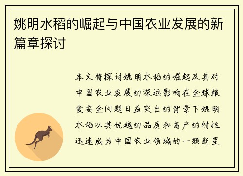 姚明水稻的崛起与中国农业发展的新篇章探讨