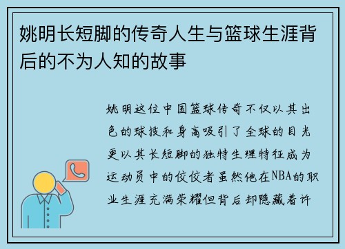 姚明长短脚的传奇人生与篮球生涯背后的不为人知的故事